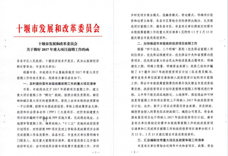 十堰市發(fā)展和改革委員會關(guān)于做好2017年重大項(xiàng)目前期工作的函