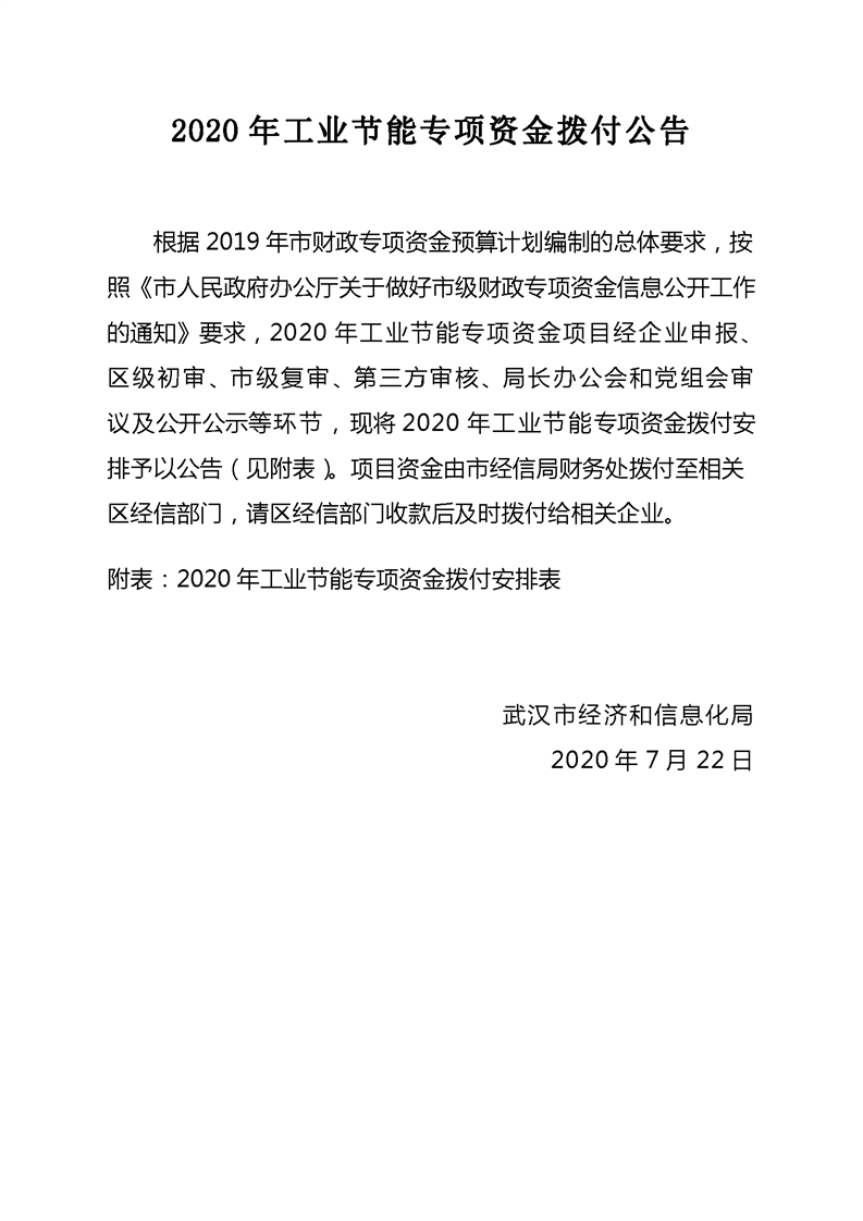 2020年工業(yè)節(jié)能專項資金撥付公告
