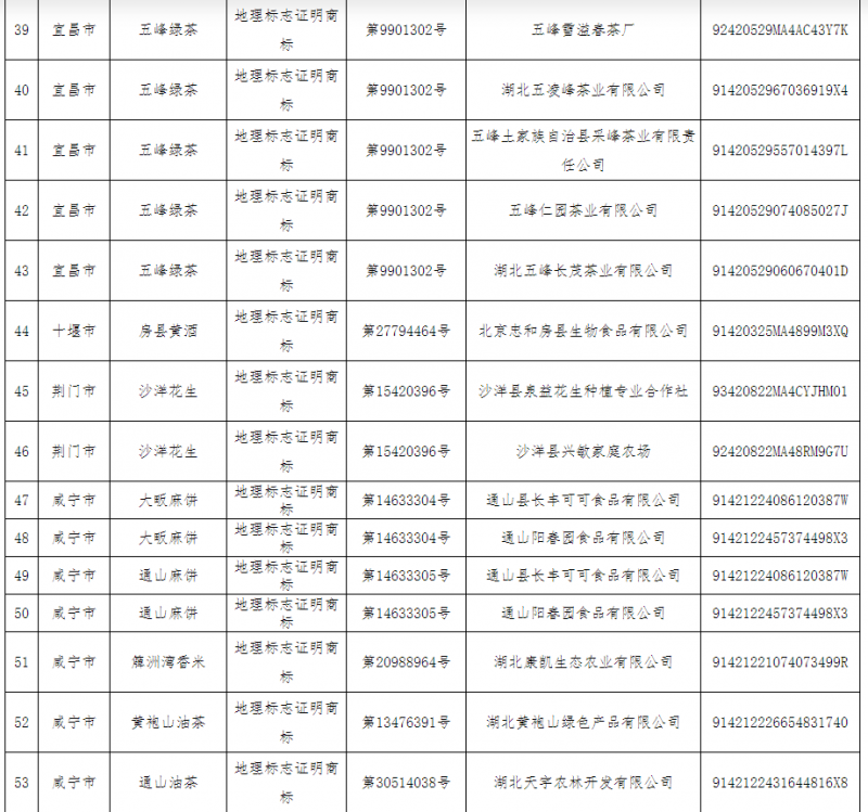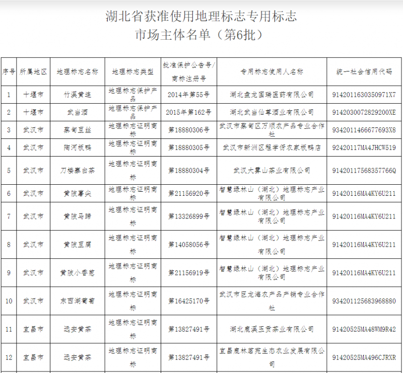 附件:湖北省獲準使用地理標志專用標志市場主體名單(第6批)